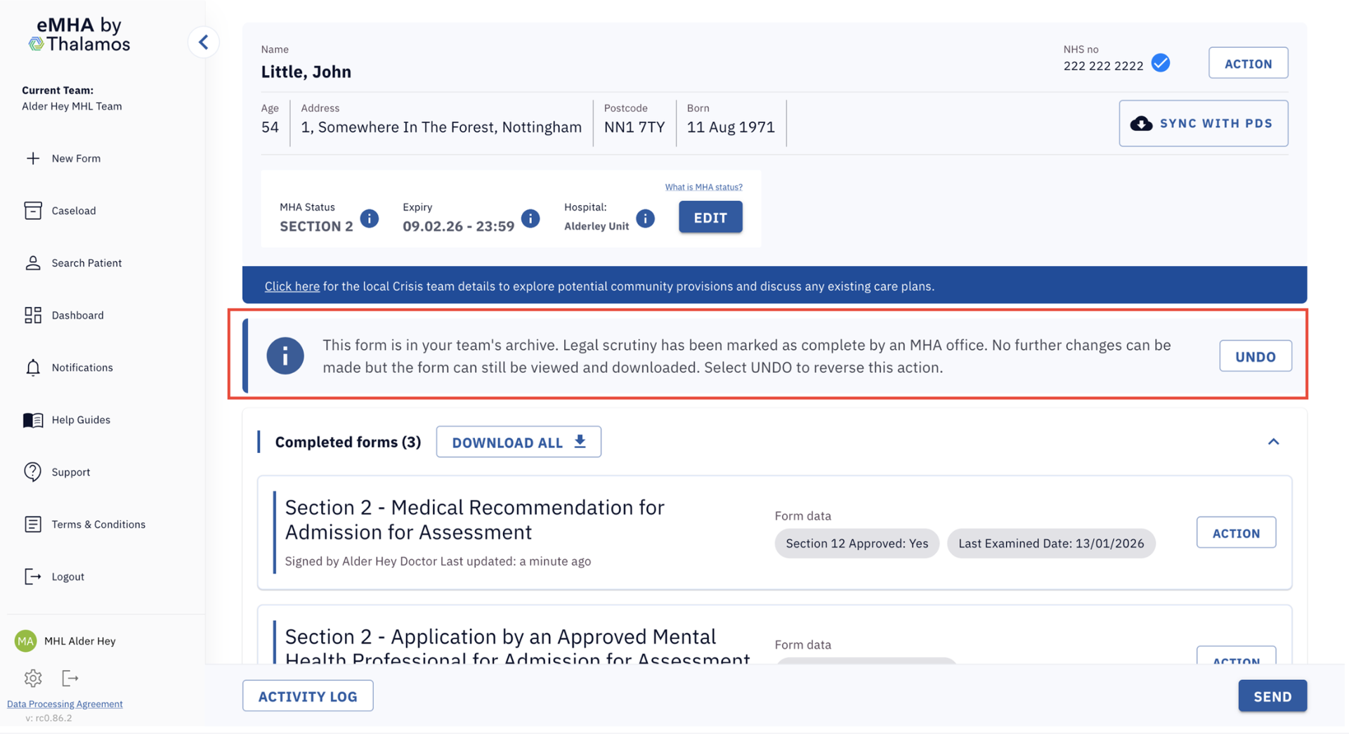 MHAA users can now MHAA users can now undo marking legal scrutiny as complete for forms and admissions.