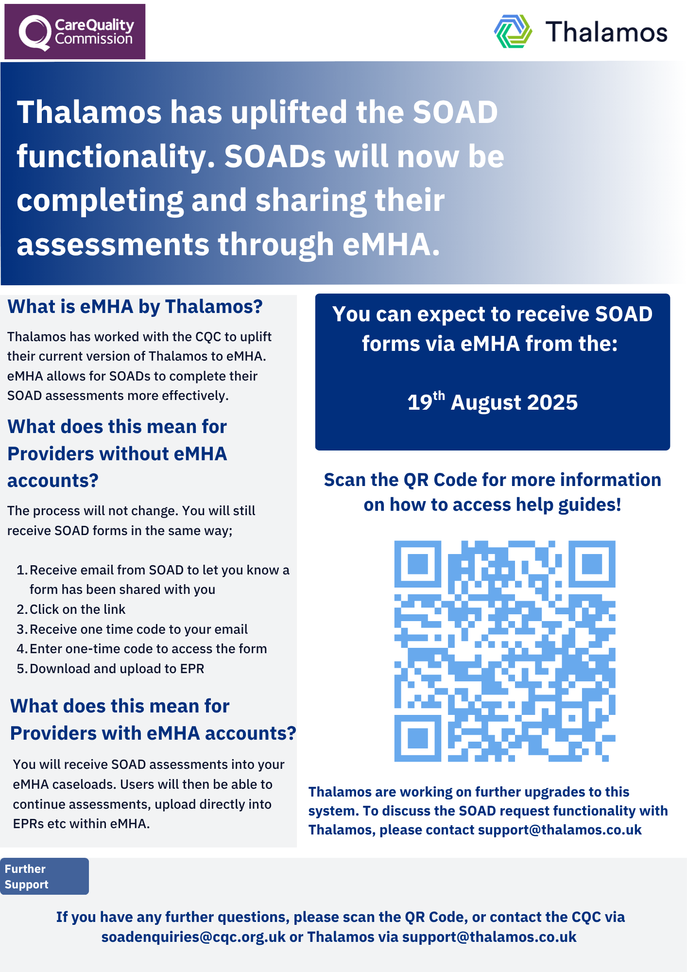 Amending Forms in eMHA eMHA now allows SOADs to amend submitted assessments, helping to correct errors or update information without the need to start a new form. Amendments can be made to both the SOAD Report Form (SRF) and any associated statutory ...